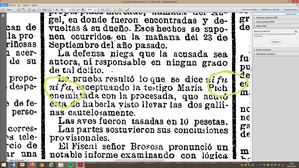 Pero no solo me pasan cosas pintorescas a mí. Me cuenta un abogado amigo el show que presenció en un juicio por delito leve. El empezó su interrogatorio a la denunciante diciendo si “era cierto que..” No pudo acabar la fase al ser interrumpido por ella que, a voz en grito, le dijo “Es mentira por Dios y la Virgen que yo no miento”. Mi amigo le pidió, obviamente, a Su Señoría, que le dejara terminar la pregunta antes de negar la respuesta. Y es que ya dice el refrán que por la boca muere el pez.